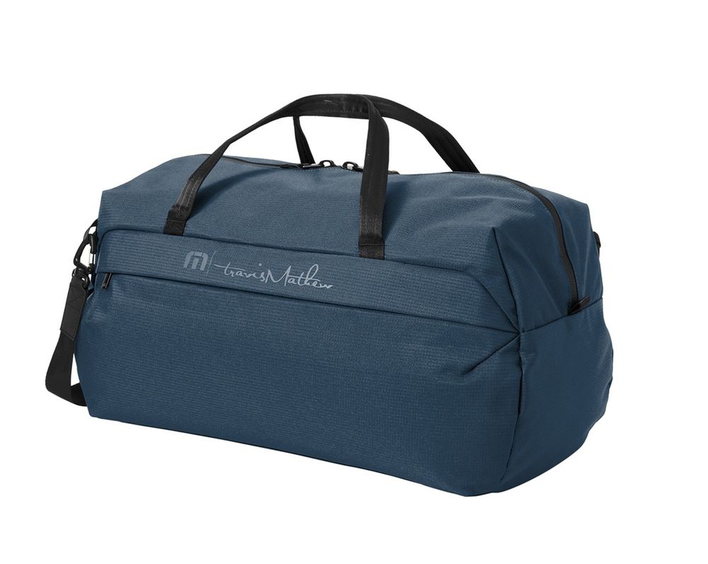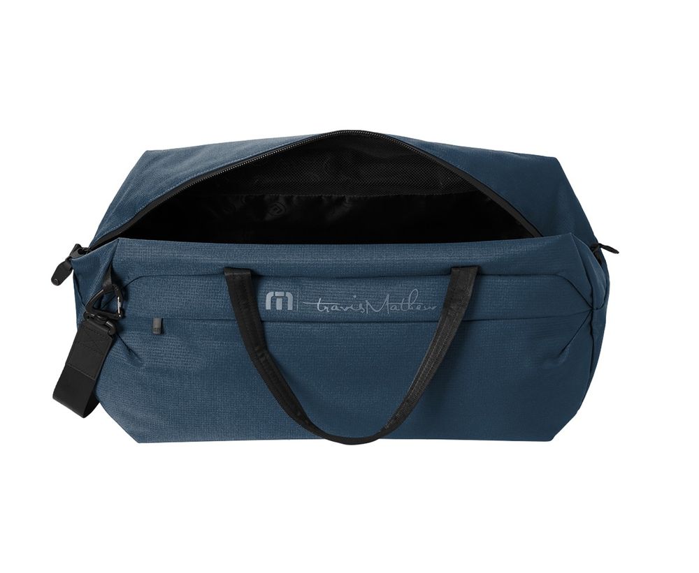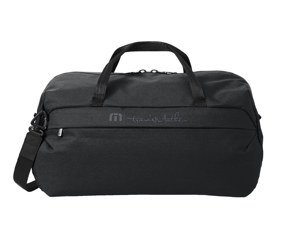 • Ready for a trip to the gym or a quick overnight stay, this duffel is just what you need. • 100% poly mini ripstop • Durable water repellent (DWR) finish • Padded handles • Detachable, adjustable, padded shoulder strap with printed TravisMathew script logo • Side zippered pocket • Dimensions: 10.5"h x 19"w x 8.5"d; Approx. 1,695 cubic inches • Note: Bags not intended for use by children 12 and under.**