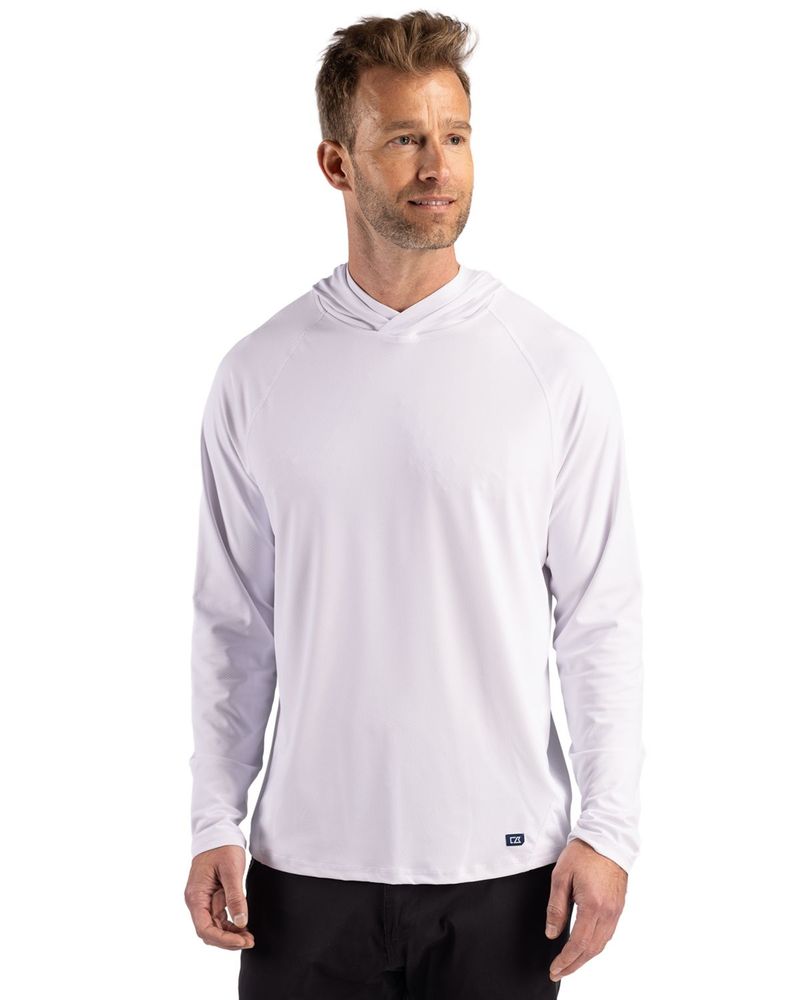 Crafted with breathable, moisture-wicking stretch fabric, this layer is built to support movement without sacrificing style. The subtle jacquard texture elevates the look, while moisture-wicking stretch fabric ensures comfort. Raglan sleeves allow for easy movement, and a streamlined hood adds functional coverage without compromising polish. Made from GRS-certified post-consumer recycled polyester, this piece supports responsible manufacturing while delivering durability and quality. With UPF 50+ UV protection, it’s a dependable layer for sun-filled days—urban or outdoors.