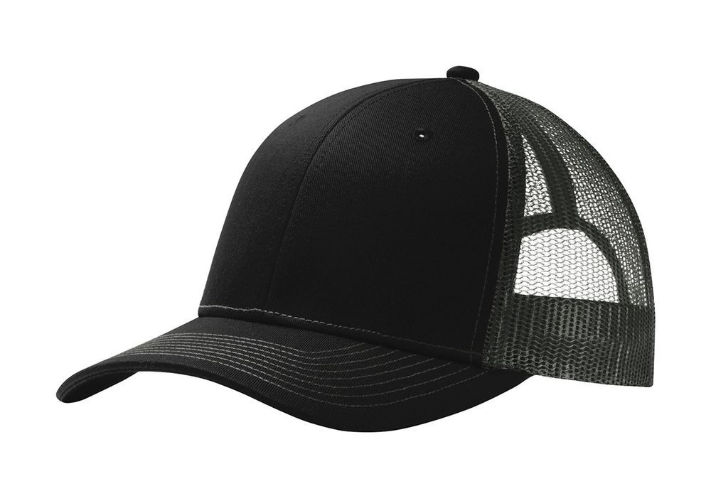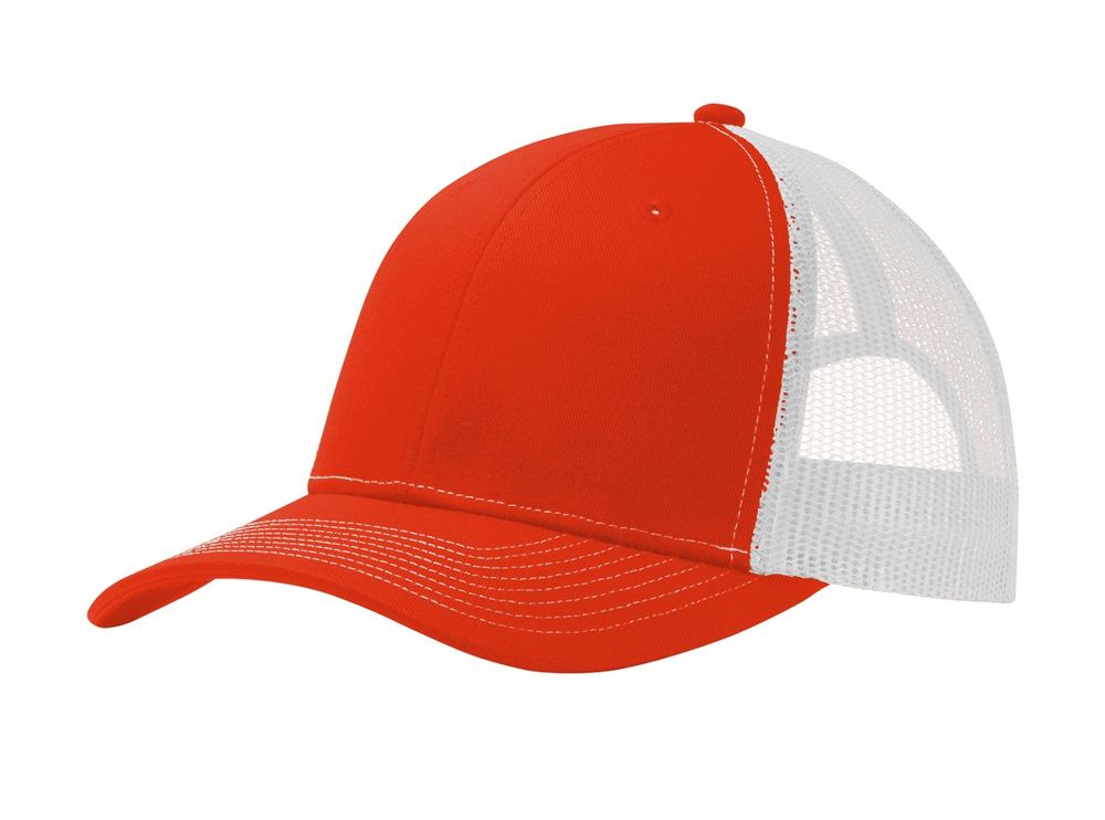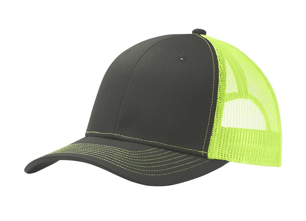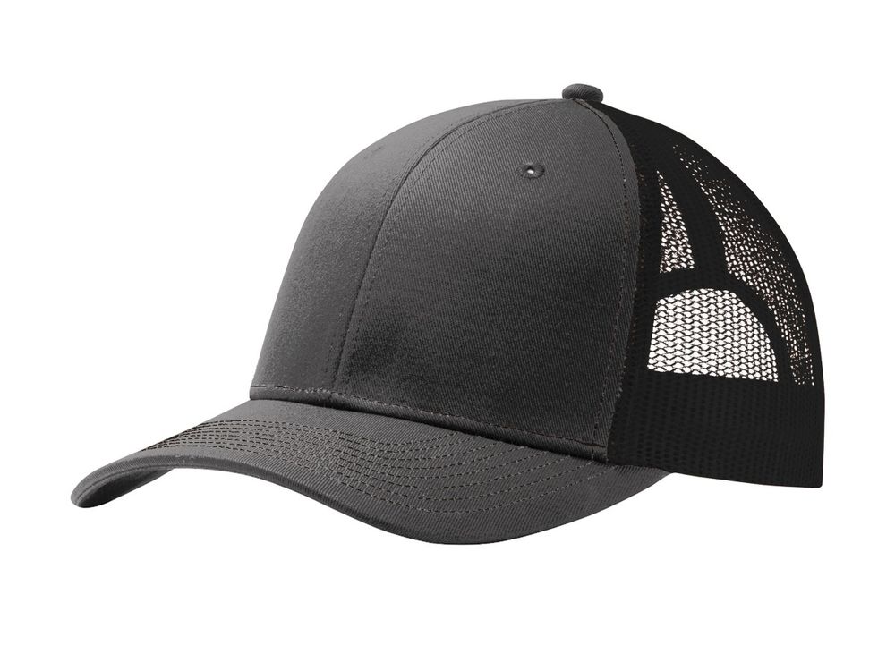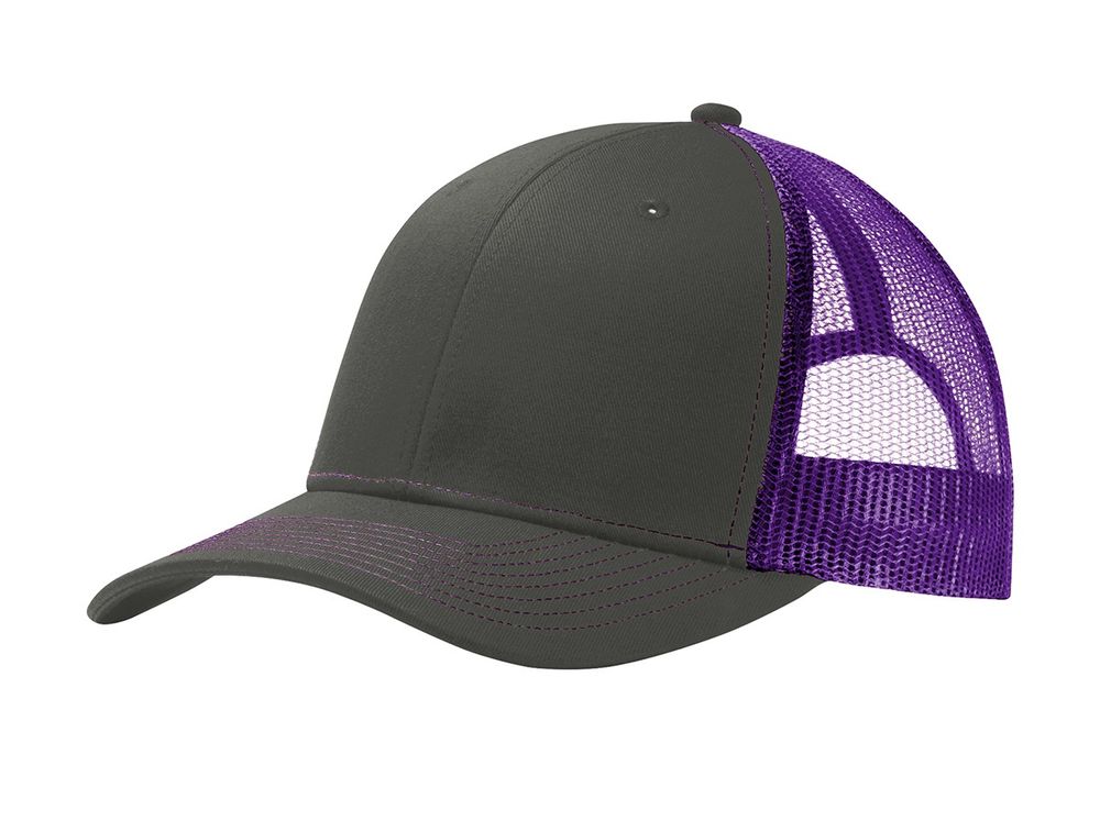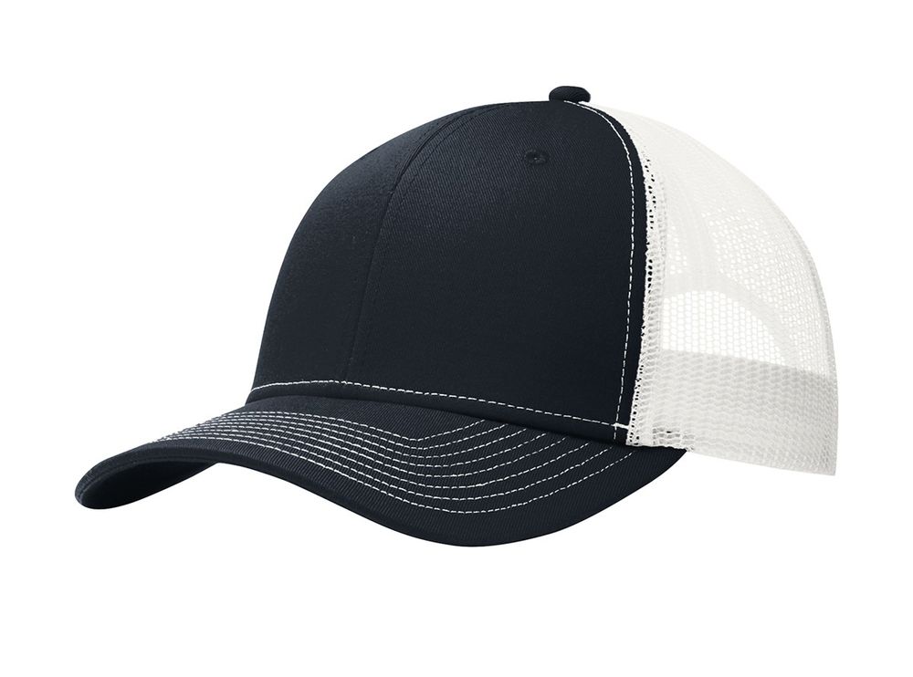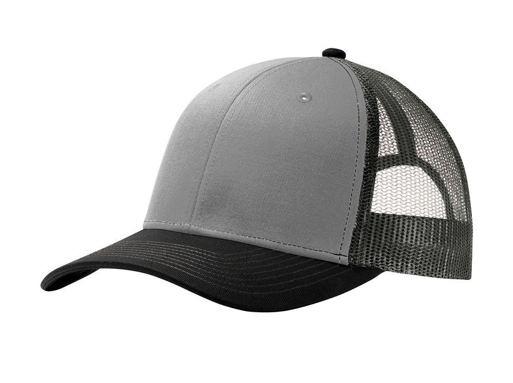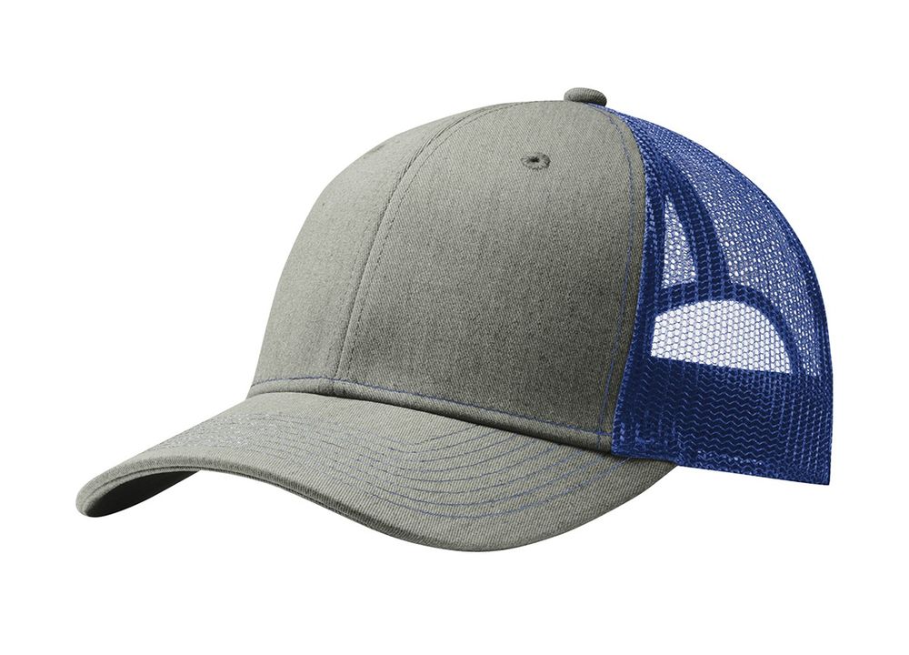 • This two-toned cap features breathable mesh and contrast stitching on the bill. • Fabric: 100% cotton twill front panels and bill (Solids)65/35 polyester/cotton twill front panels and bill (Heathers)100% polyester mesh mid and back panels • Structure: Structured • Profile: Mid • Closure: 7-position adjustable snapback
