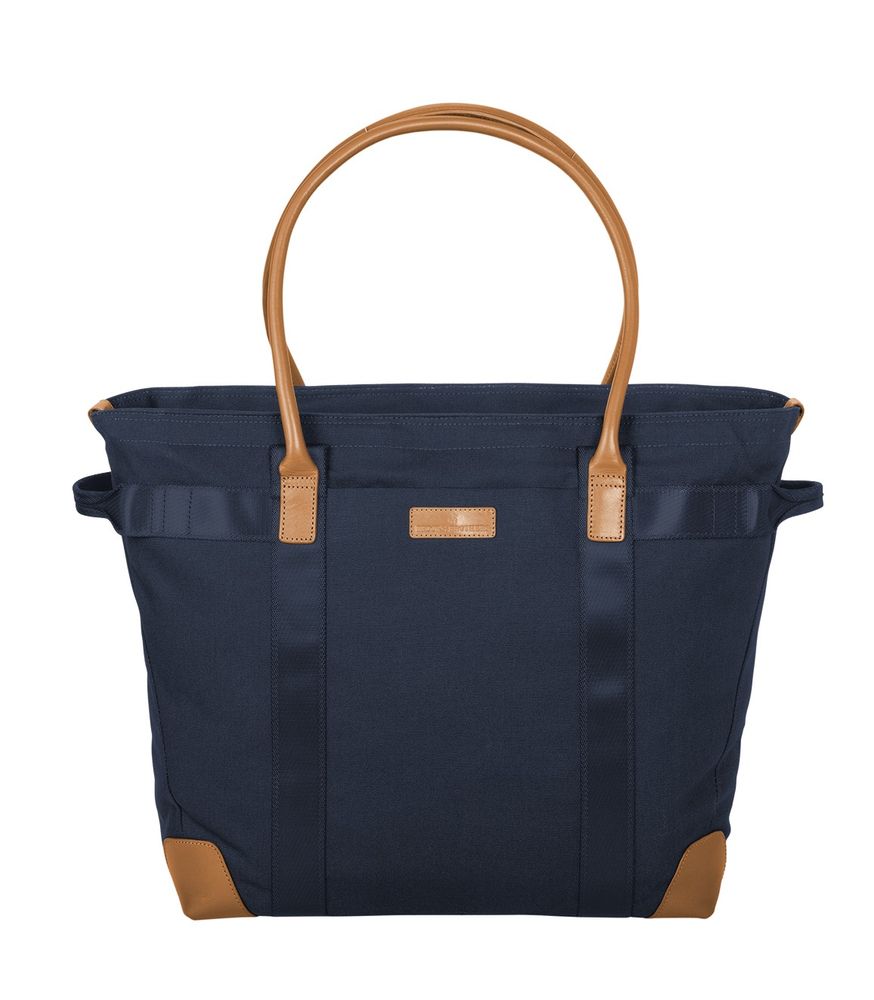 • Whether you're going into the office or on a weekend trip, this boat-tote-inspired style has all the features you need to keep your technology safe and secure. • 12-ounce cotton canvas with DWR finish • Leather trim and details • Metal zippered main compartment • Padded laptop compartment • Front pocket with snap closure • Leather carry handles • Side seatbelt webbing handles • Leather zipper pulls with Brooks Brothers logo • Exterior debossed Brooks Brothers leather label • Luggage trolley pass through on back • Laptop compartment: 11"h x 14"w • Dimensions: 16"h x 16"w x 7"d • Capacity: 1,792 cu. in./29.3 L • Weight: 2.54 lbs./1.15 kg • Note: Bags not intended for use by children 12 and under.