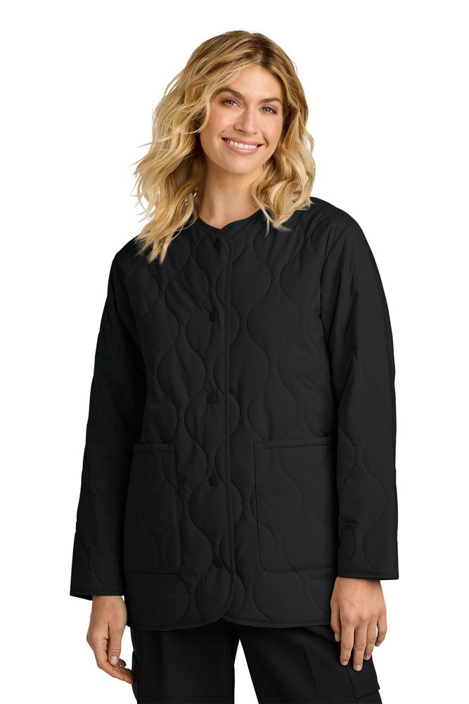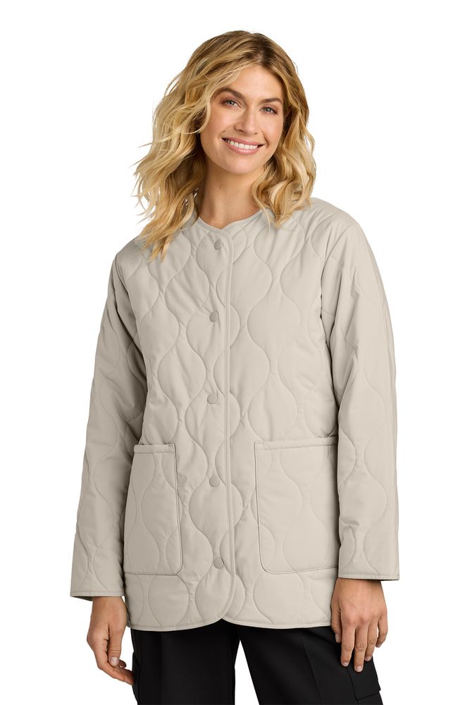 • Beautiful on their own or layered under an outerwear piece, these lightweight jackets offer three-season wearability. The traditional onion quilt pattern and weather-protective DWR sets them apart with style and performance.Fabric • 100% polyester shell • 2.5-ounce, 100% polyester fill • Durable water-repellent (DWR) finish • Features+Benefits • Onion quilt pattern • Metal snap front closure • Dual-entry pockets • Longer length